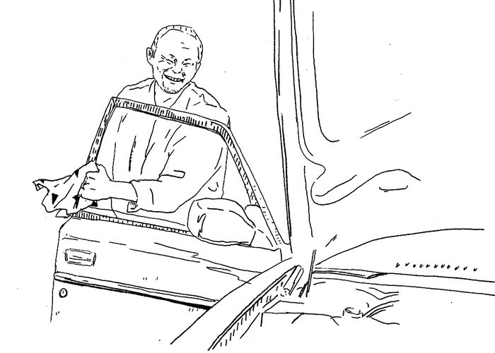 また、ガラス磨きのTさんは、この道50年のおじいさんで、最近主流になっている樹脂製のヘッドライトの曇りをとったり、経年劣化で歪みのでたウインドシールド(フロントガラス)をキレイにしてくれる職人さんなんですが、ガラスをさっと撫でるだけでミクロン単位の凸凹がわかるという神の手をもっていたりします。
